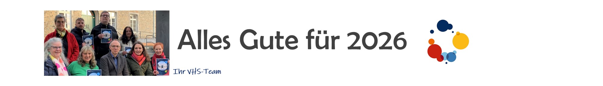 Das VHS-Programm für das 1. Halbjahr 2026 ist in Papierform und hier auf der Website ab Mittwoch, 07.01.2026, erhältlich/abrufbar.